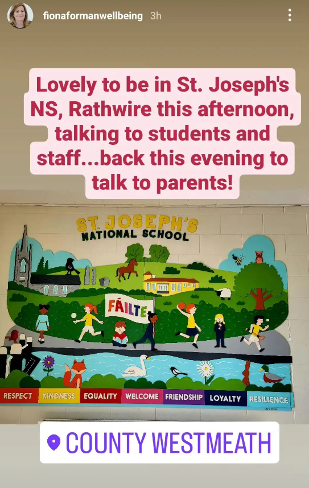 We were honoured to welcome Fiona Forman, author, speaker, trainer and facilitator in the areas of well-being and Positive Psychology to our school on Thursday the 23rd of May. Fiona spoke to sixth class and gave an illuminating talk on how to build resilience for starting secondary school. Our sixth class students enjoyed their time with Fiona and learned so much. Our staff talk focused on cultivating calmness and gave so many ideas and techniques that will certainly benefit all of the students under our care. Fiona hosted an evening talk titled 'Raising Resilient Children: Approaches from Positive Psychology', which received great praise from all who attended.