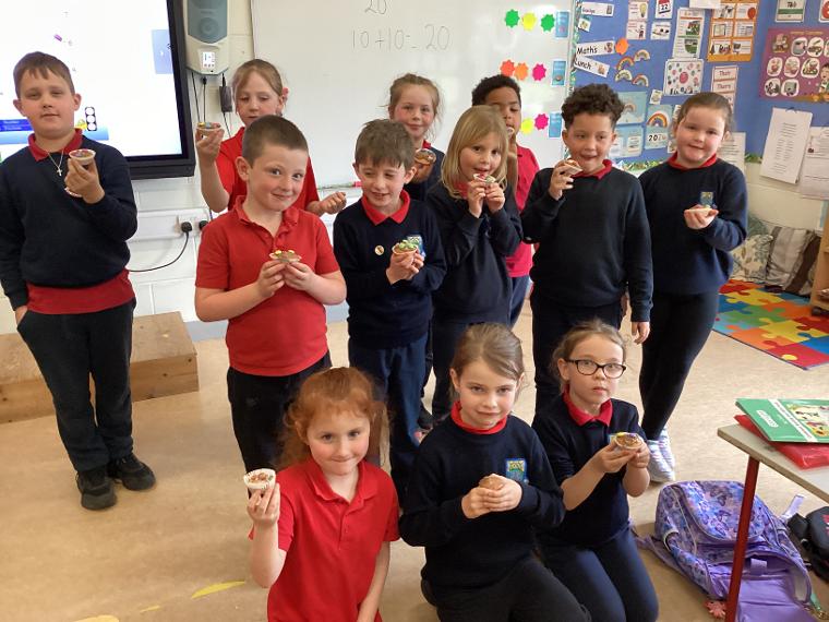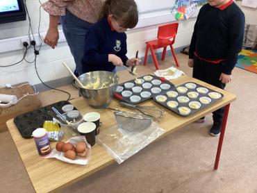 In first class we were learning about procedural writing and on Thursday we made cupcakes in class. Once we had all our ingredients and utensils, we all helped to make and decorate them. We even did the washing up after! It was great fun.