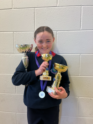 Huge congratulation to Grace who won everything at the Midlands Festival of Dance!! A gold trophy for contemporary dance, gold trophy for individual arrangement, silver trophy for the highest points in lyrical A-C and a gold medal for ballet!! Iontach ar fad!!
