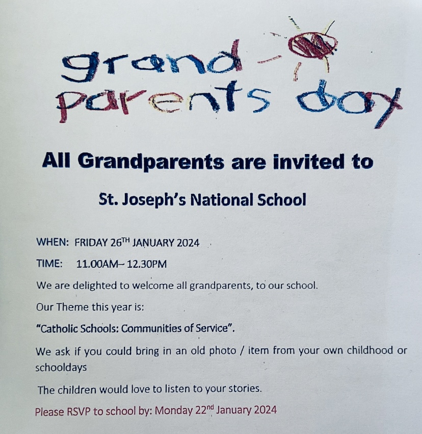 Grandparent's day was a huge success once again this year! Thank you to all our grandparents for coming to see our amazing students. We would like to extend our most sincere thanks to our senior students for providing such a warm welcome to all, to the teachers and SNA's for organising such a wonderful day and in particular to the Parents' Association for their continued support and dedication.