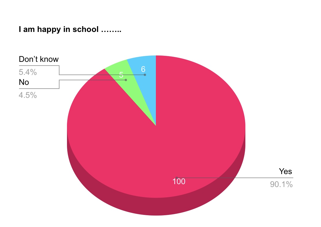 In June 2023, we began a review of our Well-being and ICT practices under the school self evaluation process. We would like to thank all parents, students and teachers for their contributions and in particular for completing our questionnaires. In total 111 students from senior infants to sixth class, as well as 50 parents participated. The results will allow us evaluate how we can best cater to the needs of all our students. The above pie charts reflect some of the information provided to us. Go raibh míle maith agaibh.