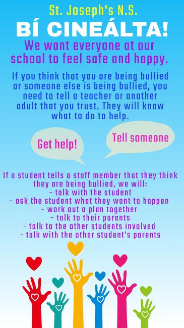 We are reviewing our Anti-Bullying policy in line with the latest Government guidelines (Bí Cineálta). As part of the Department of Education's commitment to preventing and addressing bullying in schools, they have developed a new set of guidelines and procedures which will come into effect from September 2025. It is very important that we get the views of all stakeholders involved. Below is a link to a short, anonymous parent survey. We would be very grateful if you could complete this survey before June 13th.