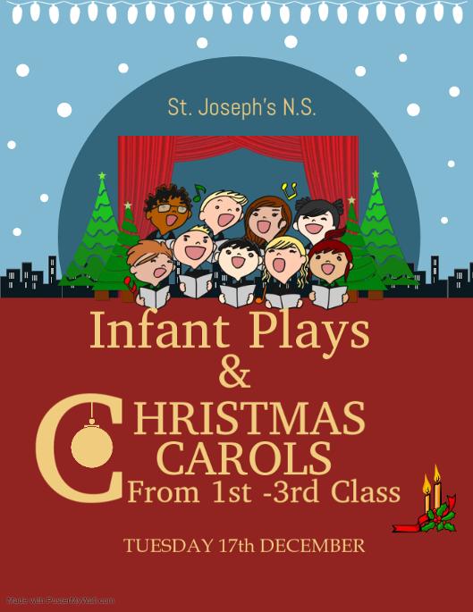 Our infant plays and Christmas carol service for 1st, 2nd and 3rd class will take place in the school hall on Tuesday 17th of December.
