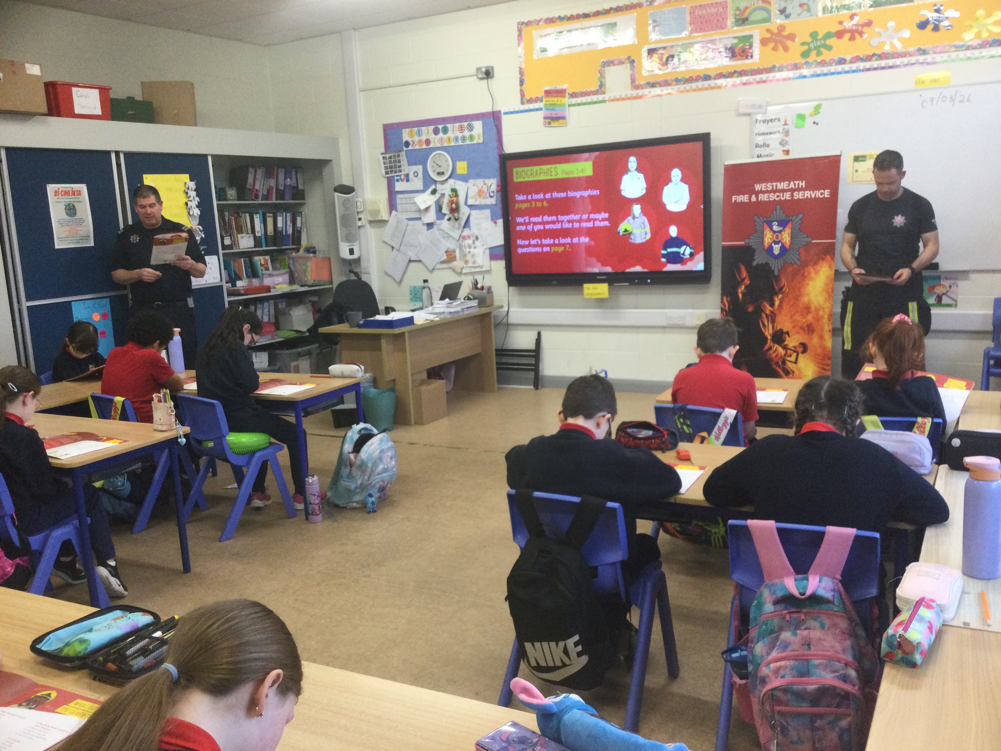 On Tuesday, two members of Mullingar Fire Service came to visit 3rd class. They spoke to us about fire safety in the home and gave us lots of useful tips to share . We also received a fire safety booklet with lots of information and fun activities to complete. We really enjoyed the visit.